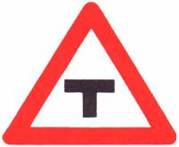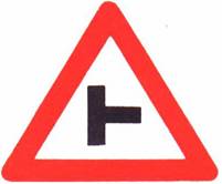 اندماج شارع فيه حق الأولوية مع طريق جانبية من اليمين (ممنوع الاستدارة إلى الطريق الجانبية) |